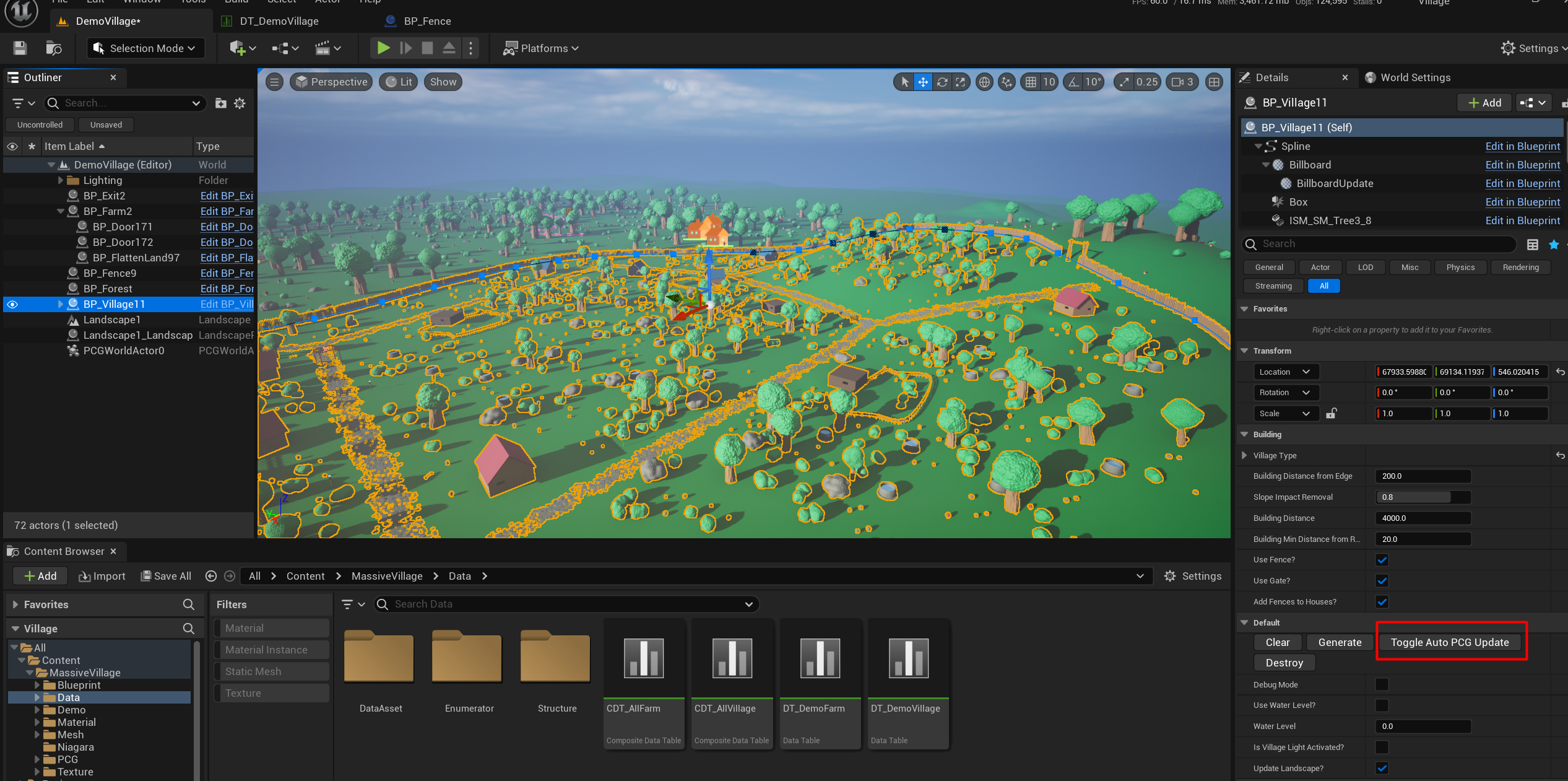 This is where the Toggle Auto PCG Update comes in. When activated it will turn off the flattening of the landscape but will always update in real time.