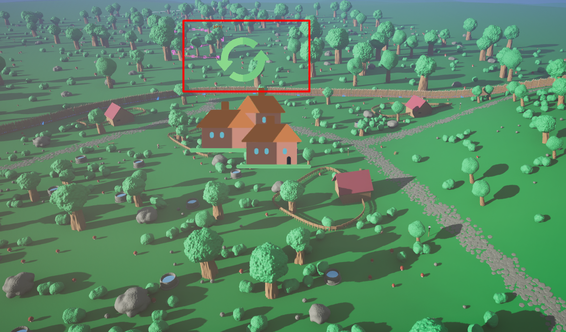 Calysto Village needs the landscape to know where to place the buildings, adapt the roads and the fences, and many other features. But the building also flattens the landscape which will trigger another update for PCG (replacing the houses and fences again) which will re-trigger the flattening of the landscape and so on.